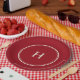 Dieses schlichte und elegante Design mit klassischem Stil besticht durch eine doppelte Grenze in einem geschmackvollen, neutralen Elfenbeinbeige auf einem roten Hintergrund. Der Rahmen ist perfekt symmetrisch, indem das Monogramm in der Mitte des Designs anfänglich eingerahmt wird. Personalisieren Sie die Textvorlage mit dem ersten Monogramm. Diese Teller sind ideal, um sich während der Ferien oder jeden Tag zu amüsieren, und haben die Leichtigkeit, für Ihren Komfort zur Verfügung zu stehen. Erhältlich in 2 Größen: hier im 9-Zoll-Durchmesser, auch in 7-Zoll-Durchmesser.