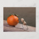 Einfache Dinge - Miniatur mit Erdnussmann, der schwere Orange auf den Hügel als Sysiphus-Konzept drückt