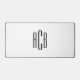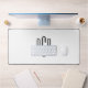 Eine weiße und schwarze, einfache dreiteilige Monogramm-Konstruktion auf einer Schreibtischmatte. Die Schriftart- und Hintergrundfarben können alle individuell angepasst werden. Erstellen Sie Ihre eigene mit Monogramm Schreibtischmatte für sein Büro.