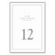 Einfache Tischnummer mit elegantem und zeitlosem Design mit zwei Buchstaben Monogramm, Namen, Datum und Tischnummer umgeben von einem dünnen Rand. Alle Designelemente sind mittelgrau über einem weißen Hintergrund und können in eine beliebige Farbe des Designbearbeitungstools umgewandelt werden. Ein gepflegtes und klassisches Design, ideal für ein Paar, das eine traditionelle Tischnummer mit einer modernen Touch will. Fügen Sie jede Tischnummer einzeln in Ihren Warenkorb.