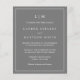 Einfache preiswerte Hochzeitseinladung mit modernem und elegantem Design mit zwei Buchstaben Monogramm oben und Ihren Details umgeben von einer dünnen Grenze. Der gesamte Text ist auf einem mittelgrauen Hintergrund weiß. Die Schriftart und Hintergrundfarben können durch Anklicken des Buttons "Anpassen" in beliebig viele Farben geändert werden. Diese billigen Einladungen sind ideal für ein minimalistisches Paar.