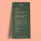Einfache dunkle Moosgrün-Monogramm-Hochzeitsempfeh Menükarte