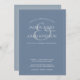 Einfache Dusty Blue Script Einladung Hochzeit. Mit dieser eleganten, staubigen, blauen Schriftzeichen-Einladungskarte laden Sie die Gäste zeitlos ein. Mit einer reinen Typografie auf sanftem, blauen Hintergrund ist es sowohl für moderne als auch für klassische Hochzeitsthemen geeignet. Koordiniert wunderschön mit der passenden Save the Date, UAWG, und danke Ihnen Karten für ein einheitliches Aussehen.