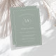 Einfache Sage Green Monogram Einladung Hochzeit. Stilvoll beeindrucken Sie Ihre Hochzeitsgäste mit dieser trendigen, grün-grünen Hochzeitseinladung, die ein schönes weißes Drehbuch mit den Initialen der Braut und des Bräutigams auf einem schluchgrünen Hintergrund enthält. Diese Einladung hat ein atemberaubendes moosgrünes Design, mit modernen und minimalistischen Farbtönen, perfekt für Ihre einfache, trendige, minimalistische Hochzeit. Das minimale und moderne Layout lenkt die Aufmerksamkeit auf das Initial-Skript, im Gegensatz zum hellgrünen Hintergrund. Diese Einladung Set den Ton für eine wunderschöne Hochzeitslandschaft, umgeben von neutralen oder schlauen grünen Blumen und passender pastellgrün Hochzeitsdekoration. Eine perfekte Ergänzung zu jeder unterschwelligen, modernen Feier. Das Sonntagkollektiv © von Rachel Hannah Gee
