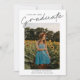 Dieses moderne, elegante Foto Abschluss Einladungs-Combi bietet ein Script-Graduate-Overlay und individuell anpassbaren Namen, Schule und Foto an der Vorderseite. Die Rückseite bietet Glückwünsche und Veranstaltungsdetails mit weiteren 2 Fotos. Eine tolle Art, Ihren Absolventen zu präsentieren.