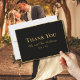 Dieses elegante Dankeschön-Karte die Einfachheit ist schön. Das Design zeichnet sich durch eine dünne und minimalistische ungleichmäßige goldene Kante mit goldener Typografie für anpassbare Dankeschön, Herr und Frau Nachname und Hochzeitstag. Back of Dankeschön Karten wurden absichtlich leer verlassen, damit Sie eine handschriftliche Notiz für Ihre Familie und Freunde hinzufügen. Empfehlung des Designers: Verwenden Sie einen dünnen Goldmarker, um die Lesbarkeit und den Kontrast zum schwarzen Hintergrund zu gewährleisten.