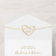 Die elegante Einladung zur Hochzeit, eine zeitlose Mischung aus Modernität und Eleganz. Mit einem minimalistisch weißen Design und einem strahlenden goldenen Seil-Herz, das die Monogramm-Initialen der Braut und des Bräutigams umschließt, strahlt diese Einladung raffinierten Charme aus. Erweitert durch ein einfaches Kalligraphieskript und ein individuelles Bild des Ehepaares auf der Rückseite, erfasst es wunderbar das Wesen Ihrer Liebe. Nahtlos verwalten Sie RSVPs und stellen Sie zusätzliche Informationen einfach über unsere enthaltene Website und QR-Code. Begleiten Sie uns auf dieser Reise der Liebe, wo jeder Augenblick gepflegt und jedes Detail gefeiert wird.