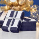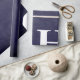 Elegantes marineblau-weißes Monogramm-Packpapier. Chalk-Effekt Ideal für Geschenkverpackungen. Abschluss, Hochzeit, Geburtstag.