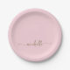 Einfache elegante Gold Monogram Script Rosa Pappteller