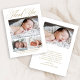 Das schlichte Elegant Gold Script 4 Foto Baby Dankeschön Card beinhaltet drei Fotos des neuen Babys, eine elegante Skriptkalligraphie und alle Statistiken des Babys. Auf der Rückseite ist viel Platz für Sie, als Sie bemerken.