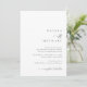 Diese einfache Elegante Hochzeitseinladung präsentiert einen schlanken, stilechten Stil der Handschrift in einem modernen Skript. Das minimalistisch gestaltete Hotel besticht durch seine Eleganz und seinen Charme, der sich ideal für Paare eignet, die eine zeitlose und zeitlose Einladung für ihren besonderen Tag suchen.