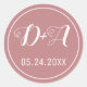 Einfache und elegante Initialen staubige Rose rosa Hochzeitsnähe rund Umschlag Aufkleber Aufkleber. Es koordiniert mit unserer Hochzeitssuite "Dusty Rose Aquarell Blume".