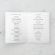Klassisches weißes gefaltetes Hochzeitsprogramm mit "Begrüßung" in einem zarten Skript. Benutzen Sie die Vorlage, um einfach Ihre Hochzeitsfeier und die Reihenfolge der Zeremonie in das Innere und Ihr Dankeschön Nachricht an den Rücken hinzuzufügen. Ein einfaches Layout ohne Grafiken macht es zu einem eleganten und zeitlosen Design, perfekt für eine formelle Hochzeit.