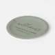 Personalisierte Weise grün Hochzeitspapier-Teller mit einem modernen Script-Schriftart. Einfach mit Ihren Hochzeitsdetails online personalisieren. Die passenden Artikel ergänzen diese minimalistischen, aber eleganten Hochzeitszeitung-Teller.