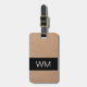 Einfache, elegante Gepäckmarke mit DRUCKTEM Pappe, schwarzer Streifen und feinem Monogramm.