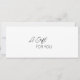 Modernes und berufliches Geschenkgutschein in Schwarz/Weiß mit einem schlichten und minimalen Design mit Ihrem Namen in einem eleganten Drehbuch und zeitgenössischen serifenlosen Schriftart. Die Rückseite hat Ihre Kontaktdaten und optionalen QR-Code in einem minimalistischen Layout. Wenn Sie es vorziehen, kann der QR-Code im Entwurfstool entfernt werden.