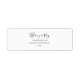 Dieses einfache, elegante Rücksendelabel ist perfekt für Ihre moderne, minimalistische Schwarz-Weiß-Hochzeit. Das Design besticht durch minimalen zeitgenössischen Schriftart, begleitet von formaler Kalligraphie. Behalt es so, wie es ist, oder wählen Sie es mit Ihren eigenen Kunstwerken oder Fotos zu personalisieren!