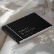 Einfach und so elegant, hat dieses moderne Gästebuch-Design einen echten Silber-Text in Silberschrift mit den Namen von Braut und Bräutigam und dem Hochzeitstag auf einem kontrastierenden schwarzen Hintergrund. An der links Seite der Frontabdeckung verläuft eine Folienlinie, die auf Single abgestimmt ist, von oben nach unten. Der Rücken dieses Gästebuches hat auch eine Textvorlage, die Sie mit Ihrer gewünschten Formulierung personalisieren können. Laden Sie Ihr eigenes horizontales Foto auf die Rückseite hoch, um einen besonderen Moment hinzuzufügen, den Sie aufnehmen möchten.