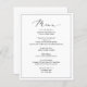 Diese elegante Menu-Karte aus unserer Minimalistischen Hochzeitskollektion von B&W besticht durch ein schlichtes Design und einen modernen Schriftart. Ideal für jede Jahreszeit. Um vorzeitige Änderungen vorzunehmen, wählen Sie Personalisieren -> Bearbeiten mit dem Entwurfstool.