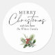 Dieser schlichte weiße Weihnachtsaufkleber zeichnet sich durch eine elegante Typografie auf weißem Hintergrund aus, sowie durch die Darstellung von Aquarellkiefer-Blätter und saisonalen Holly-Beeren. Einfach mit Ihrem Familiennamen nach vorne für eine besondere Touch beim Kennzeichnen Ihrer Karten und Geschenke in dieser Feriensaison personalisieren.