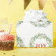 Elegantes Weihnachtspapier mit "JOY" in Rot, umgeben von einem grünen Kranz. Dieses Urlaubspapier wird sicher eine festliche Touch zu Ihren Weihnachtsgeschenken hinzufügen.