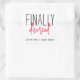 Erhöhen Sie Ihre Geschenke und Umschläge mit 'Endlich geschieden' Sticker! Mit modernster Typografie in Schwarz und Handschrift rot vor einem schicken, weißen Hintergrund, fügen diese Aufkleber eine Touch von Stil und Spaß zu jedem Paket hinzu. Feiern Sie die Befreiung mit dem Flair, denn das spielerische Design tobt auf neugefundene Freiheit und einen Hauch von Rebellion. Das in Rot-Gelb handgeschriebene Wort "Scheidung" fügt jedem Aufkleber eine personalisierte Touch hinzu. Diese Aufkleber sind Teil unserer Geschenkkollektion und ergänzen jedes Geschenk oder Umschlag und verleihen ihnen so ein Gefühl von Ermächtigung und Stil. Passen Sie den Text an, um ihn einzigartig zu machen und zum Leben, zur Freiheit und zum Streben nach Glück zu bejubeln!