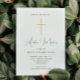 Die einfache religiöse Erstkommunion Einladung beinhaltet klassische Kalligrafieschrift und ein einfaches goldenes Farbkreuz.