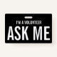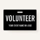 Schwarz-weißer Freiwilliger für Veranstaltungen in Schule, Museum, Wohltätigkeit, Business, Firmenveranstaltungen, Feldausflüge. Sie können Ihren Text hinzufügen oder ein Firmenlogo als Bild hochladen.