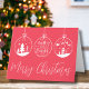 Line Art Classic Einfache festliche Merry und helle Rot Weiße Ornamente Merry Weihnachtskarte. Eine perfekte Weihnachtskarte für den persönlichen oder geschäftlichen Gebrauch. 3 Ornamente, eins mit "Merry and Bright" in der Mitte. Die anderen beiden haben Winterszenen wie ein Weihnachtsbaum und der Weihnachtsmann und die Rentiere, die über einem Haus fliegen. Ein lustiges, aber einfaches und modernes Print! Im Moment ist es eine rote und weiße Farbe, aber man kann jede Farbe zu dem schalten, was man gerne benutzen möchte! Auch die Ornamente können geändert werden. Eine Mischung aus moderner Schrift und Schrift. Erhältlich als gedruckte Karte oder als digitale Karte zum Herunterladen, die Sie per E-Mail versenden können oder lokal gedruckt haben!