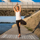 abstrakte geometrische Linien grenzen an Yogamattel. Probieren Sie dies für Ihr morgendliches Training aus und teilen Sie uns Ihr Feedback mit.