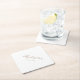 Untersetzer zum Hochzeitspapier. Paar Namen und Datum. Einfach. Gold Script Schriftart. Diamantform.