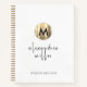 Modernes Minimalistisch glamouröses goldmetallisches Emblem Schwarzer Anfangsname Girly Script Beruflich Titel Rolle Custom Text Template Schlicht White Background Monogram Notebook
