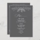 Mit dieser minimalistischen und modernen Einladung lassen Sie sich von der natürlichen Ruhe verzaubern. Das gepflegte, zentrierte Layout ist mit einer zarten, weißen Linie geschmückt, die von Eukalyptus-Blätter mit einem schlichten grauen Hintergrund zeichne, was eine bleibende Liebe und Wachstum symbolisiert. Es ist ein elegantes und ausgewogenes Design für Paare, die raffinierte, naturlich inspirierte Details schätzen. Dieses Hochzeitsmenü ist Teil eines kompletten Set.