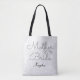 Einfach graue Hochzeitsmutter des individuellen Namens der Braut Tote Tasche. Minimalistische Blumenmuster passen Typografie an. Elegant, elegant, modern, trendig, stilvoll und wunderschön. Klicken Sie zum Ändern des Skripts auf Design bearbeiten. Bildrecht Marg Seregelyi Fotografie.