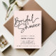 Minimalistische Brautduscheinladungen mit "Brautparty" oben links, in schwarzer Kalligrafie-Schrift vor einem rot-rosa Hintergrund präsentiert. Pink Braudusche Einladungen mit dem Namen der Braut und Dusche Party Details unten anpassen. Das zeitgenössische Brautparty lädt zu einem soliden rosa Hintergrund gedreht werden. Vertikale Version