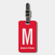 Dieses hellrote Gepäckanhänger hat eine weiße Textvorlage. Sie können Ihre Gepäckmarke mit Ihrem Monogramm und Namen anpassen. Sie können beide Seiten des Gepäckanhängers bearbeiten.