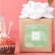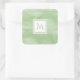 Einfache, dezente Marmoraufkleber in hellgrün mit einem modernen, weißen quadratischen Abzeichen, das Sie personalisieren können, indem Sie Ihre mit Monogramm Erstauflage hinzufügen. Dies ist Teil der Nile Green Subtle Marble Monogram Collection.