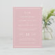Einfache Hochzeitseinladung mit modernem und elegantem Design mit zwei Buchstaben Monogramm oben, einem kühnen Datumslayout und Ihren Details, umgeben von einer dünnen Grenze. Der gesamte Text ist in Weiß auf einem rosa Rose-Hintergrund verstaubt. Die Schriftart und Hintergrundfarben können beliebig verändert werden. Ein elegantes und stilvolles Design, das sich ideal für ein minimalistisches Paar eignet.