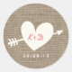 Einfache Herz- und Arrow Rustikale Burlap-Gastgesc Runder Aufkleber
