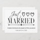 Herzlichen Glückwunsch an das glückliche Paar, das gerade verheiratet got. Mit dieser schwarz-weiß gerade verheirateten Karte können Sie Ihre Ehe mit Familie und Freunden verkünden. Enthält ein Textfeld, um eine Erklärung auf der Rückseite dieser Hochzeitkarte zu schreiben. Einfache moderne Eleganz Typografie ist das Beste.