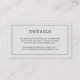 Einfache, kleine Hochzeitszimmerkarte mit modernem und elegantem Design, umgeben von einem dünnen Rahmen und einem Monogramm auf der Rückseite. Alle Designelemente sind schwarz über einem hellgrauen Hintergrund und können im Designbearbeitungstool geändert werden. Ein elegantes und stilvolles Design, das sich ideal für ein minimalistisches Paar eignet. Benutzen Sie diese Umzäunungskarten, um Anweisungen und andere wichtige Informationen zu geben, die Ihre Gäste vielleicht wissen müssen, wie z.B. Hotelunterkünfte, Parkplätze, Shuttleservice, etc.