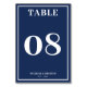 Die Tischnummer ist einfach, mit einem Rand und einer blauen und weißen Hochzeitskarte. Personalisieren Sie es mit Ihren Veranstaltungsdetails. Ändern Sie die Nummer für jede Tabelle, die Sie haben.