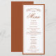 Mit diesem Botanischen Wappen Mongram Wedding Menu können Sie Ihren Hochzeitsempfang mit der Terracotta Elegant & Chic genießen. Dieses Menü mit einer eleganten Schwarz-Weiß-Farbpalette zeigt Ihnen Ihr individuelles Monogramm, das in ein zartes botanisches Wappen oben eingebettet ist, und fügt Ihren Tischeinstellungen eine personalisierte und raffinierte Touch hinzu.