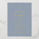 Traditionelle Goldfolie-Hochzeitseinladung mit einem einfachen Design, das Ihr Monogramm zusammen mit Akzenten in einem eleganten Skript auf einem staubigen blauen Hintergrund enthält. Diese klassische Hochzeitseinladung ist ideal für eine feierliche Hochzeit.