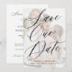 Moderne romantische Hochzeit speichern die Datumsvorlage mit Ihrem eigenen Foto in trendigen Imitaten vellum weißes transparentes Overlay mit schwarzem handgeschriebenem Kalligrafieschrift. +++++++++++ Einfach mit Ihren Details und Bildern auf beiden Seiten personalisieren! +++++++++++ Geeignet für jede Saison und für jedes elegante Hochzeitstil. ++++++++ Bitte beachten Sie, dass die Hintergrundfarbe auf der Rückseite geändert werden kann. Sie können es ändern, nachdem Sie CUSTOMIZE Option ausgewählt haben. Wenn Sie Hilfe benötigen, können Sie den Live Design Service kostenlos nutzen.