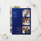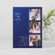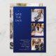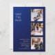 Simple Wedding Save The Date Foto Picture Invitations beinhaltet vier Ihrer Lieblings-Fotos, drei auf der Vorderseite und eines auf der Rückseite mit dem Text "Save the Date" in eleganter, moderner Schrift-Typografie auf blauem Schimmer-Hintergrund. Einfach, modern und elegant für Ihre Hochzeitsfeier. Entworfen von ©Evco Studio www.zazzle.com/store/evcostudio