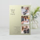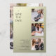 Simple Wedding Save The Date Foto Picture Invitations beinhaltet vier Ihrer Lieblings-Fotos, drei auf der Vorderseite und eines auf der Rückseite mit dem Text "Save the Date" in eleganter, moderner Schrift-Typografie auf beige-schimmerndem Hintergrund. Einfach, modern und elegant für Ihre Hochzeitsfeier. Entworfen von ©Evco Studio www.zazzle.com/store/evcostudio