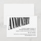 Eine einfache Hochzeitsankündigung, die die Gäste darüber informiert, dass die Hochzeit verschoben wurde. Es wurde eine Anmerkung aufgenommen, dass in Zukunft weitere Informationen verschickt werden.