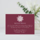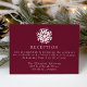 Vervollständigen Sie Ihre Hochzeitssuite mit unserer Simple Snowflake Wine Wedding Reception Enclosure Card. Mit einem fett weißen Schneeflocken am oberen Ende und den Details Ihrer Hochzeitsfeier in weißen Serifenschriften auf einem weinfarbigen Hintergrund ist diese Karte der perfekte Zusatz zu Winter-, Feiertag- und Weihnachtsfeiern. Das Design ist einfach, modern und elegant und bietet eine stilvolle Möglichkeit, Ihre Empfang-Informationen mit den Gästen zu teilen.