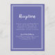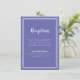 Die schlichte, minimalistische und elegante Visitenkarte von Wedding Empfang bietet ein zeitgemäßes Design mit einem doppelten Rahmen in knalligem Weiß auf einem trendigen, periwinkelblauen Hintergrund. Traditionelle Formulierungen bieten zeitlose, aber moderne Eleganz. Personalisieren Sie das Hochzeitsdesign mit Ihren Details in weißer Schrift und Schrift. Die Rückseite der Karte passt in Blau.